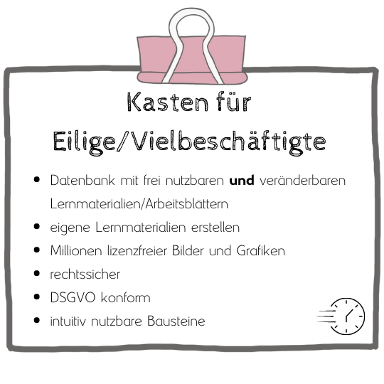"zaubern" Sie übersichtliche, rechtssichere und optisch ansprechende Lehr- und Lernmaterialien. Die Ausgabe der Arbeitsblätter kann analog